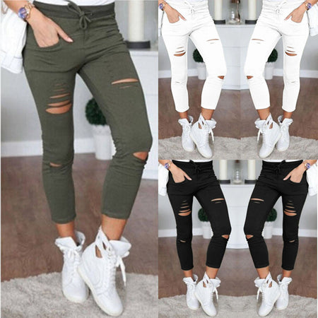 Women Skinny Ripped Pants High Waist Stretch Pencil Pants