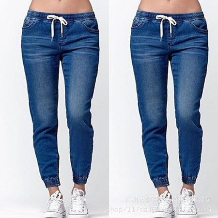 Womens Active Stretch Drawstring Joggers Pants Pull On Distressed Elastic Denim Shorts