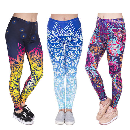 Women Stretchy and Soft Mandala Printed Yoga Leggings, Tummy Control Running Pants