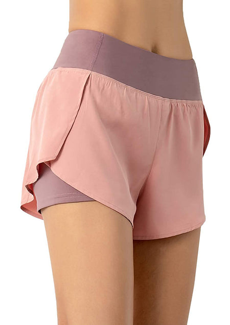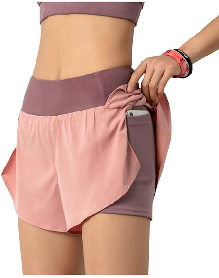 Women Quick-Dry Running Shorts Double Layer Workout Athletic Gym Shorts with Pockets