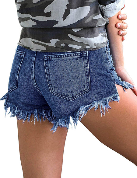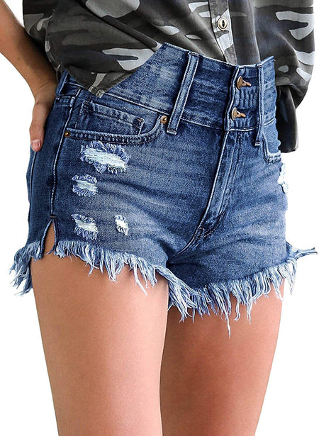Women Casual High Stretchy Denim Shorts Frayed Raw Hem Ripped Jeans Shorts