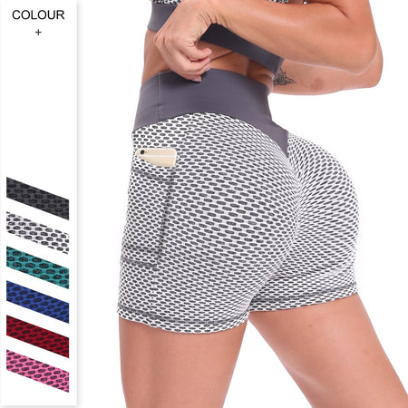 Women Yoga fitness honeycomb pocket high waist sexy hip-lifting breathable shorts