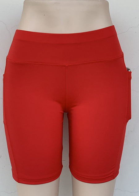 Solid Color Stretchy Breathable High Waisted Workout Shorts
